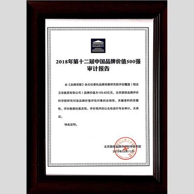 獎 項:2018年第十二屆中國品牌價值500強審計報告