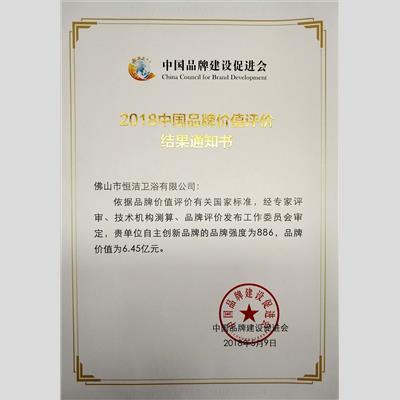 獎 項:2018中國品牌價值評價
