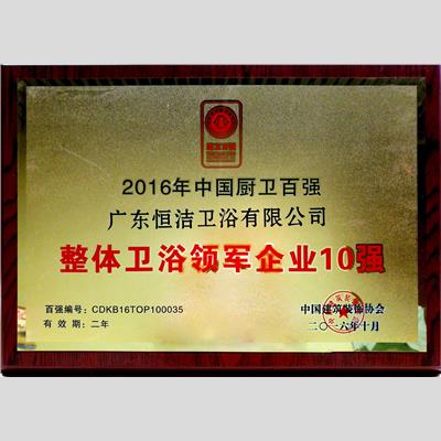 獎 項:2016年中國廚衛(wèi)百強 整體衛(wèi)浴領軍企業(yè)10強