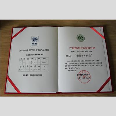 獎 項(xiàng):最佳節(jié)水產(chǎn)品 (H0129D單檔馬桶)
