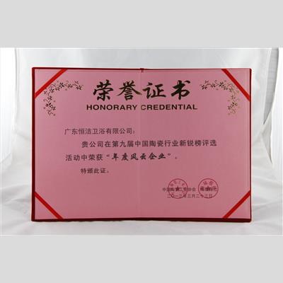 獎 項(xiàng):第九屆中國陶瓷行業(yè)新銳榜年度風(fēng)云企業(yè)