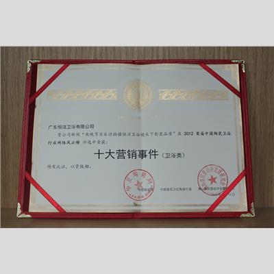 獎 項(xiàng):中國陶瓷衛(wèi)浴行業(yè)“十大營銷事件”(上央視《每周質(zhì)量報告》)