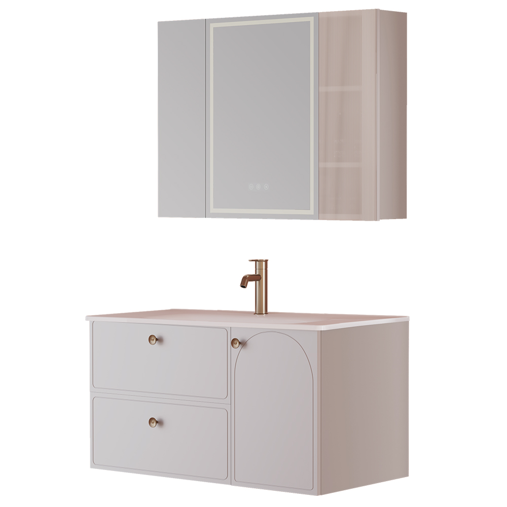 - 2、輕法式浴室柜,法式拱形門板,輕盈配色,浪漫優雅;