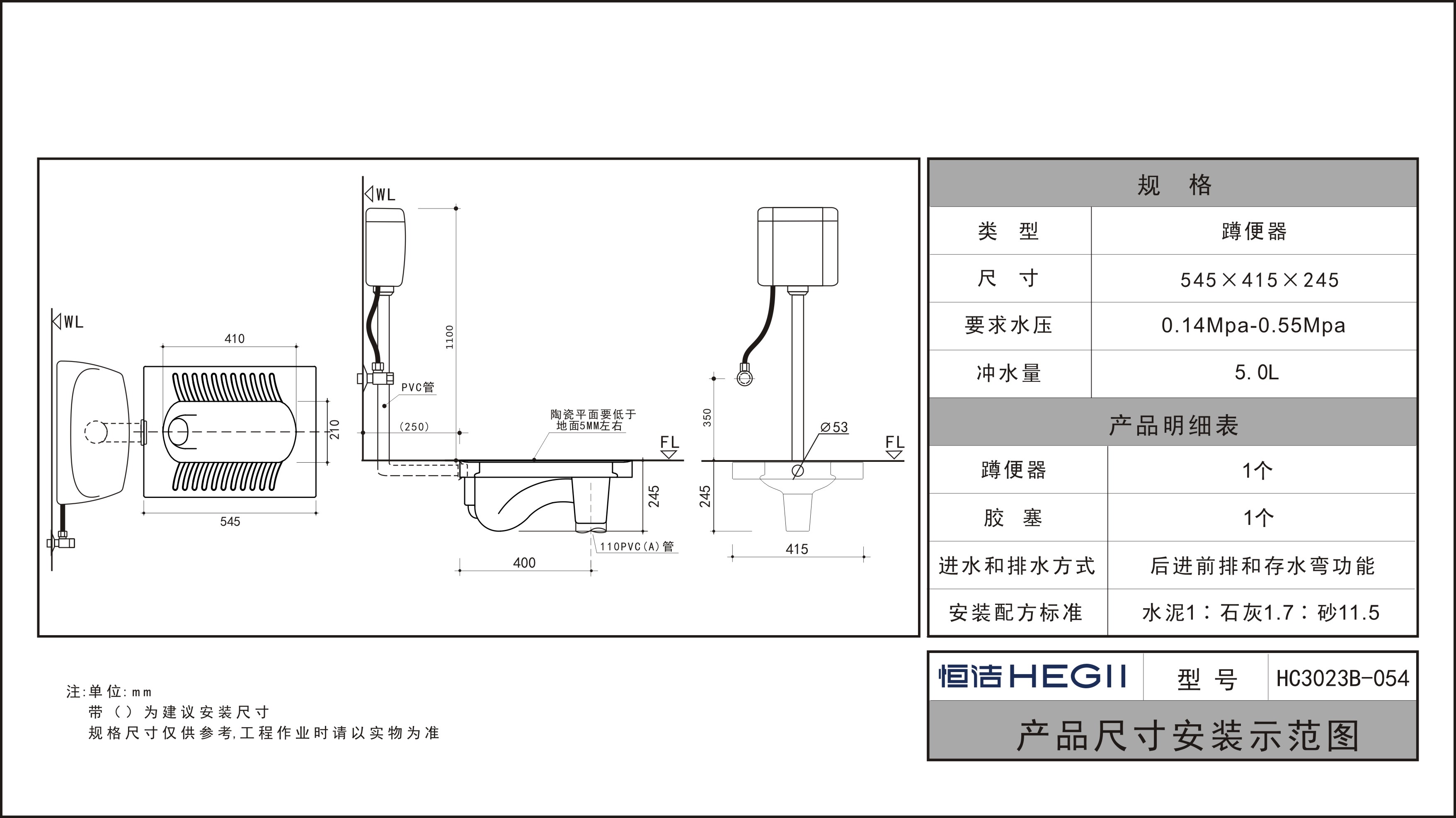 HC3023B-054導流導壓蹲便器