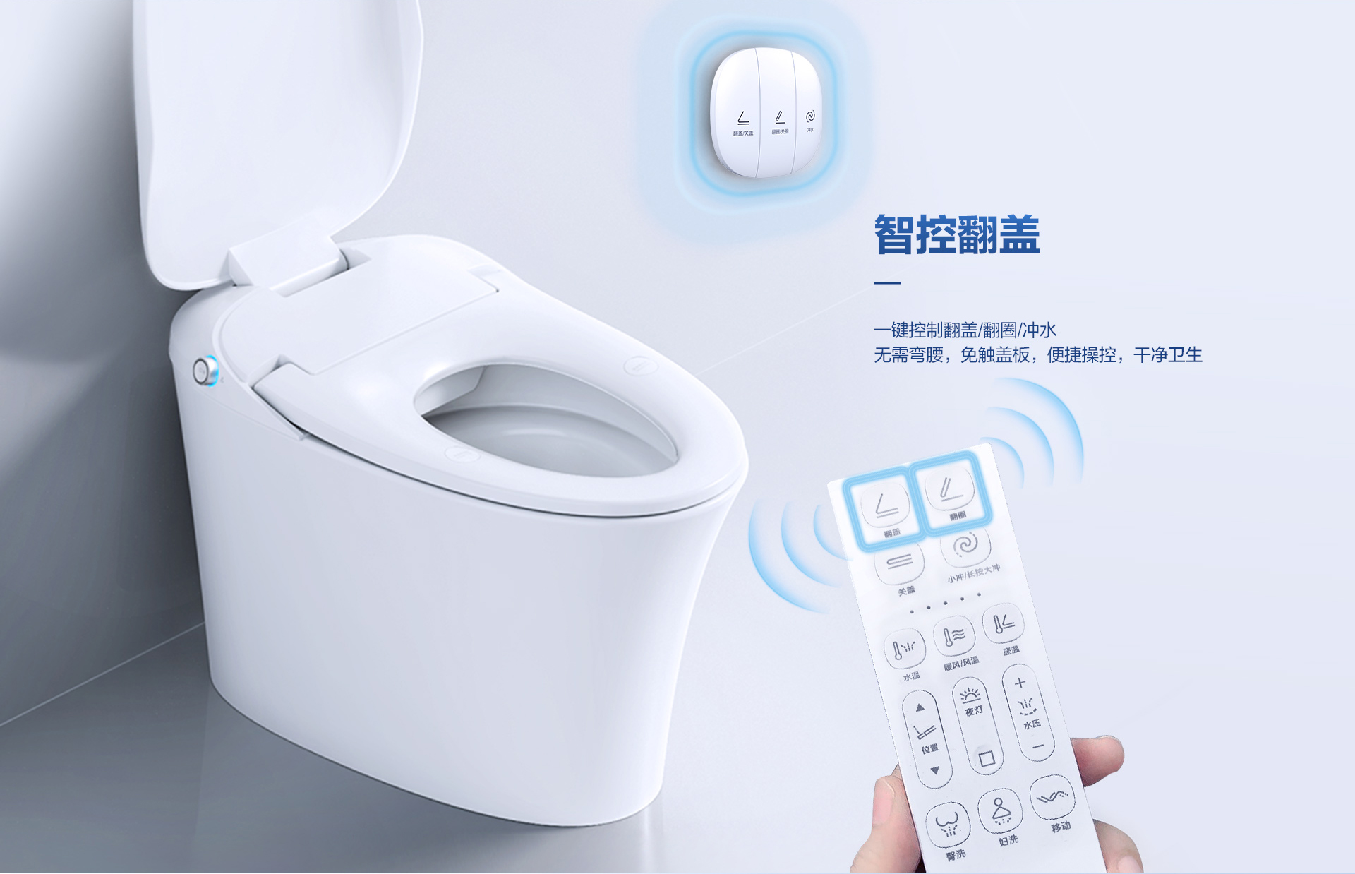 - 翻蓋翻圈:智能遙控開啟,翻蓋無需彎腰,如廁便捷衛(wèi)生